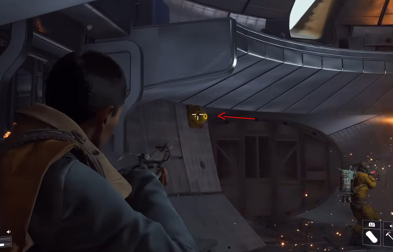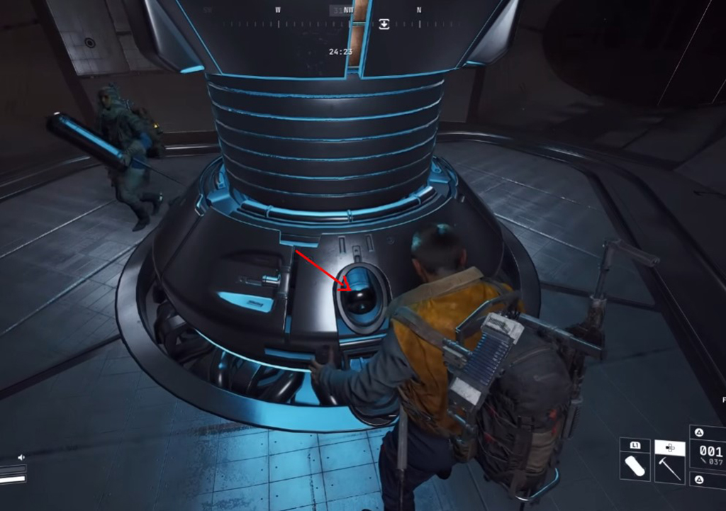 - Sprint to the upper walkway and begin breaching every cabinet in sequence.