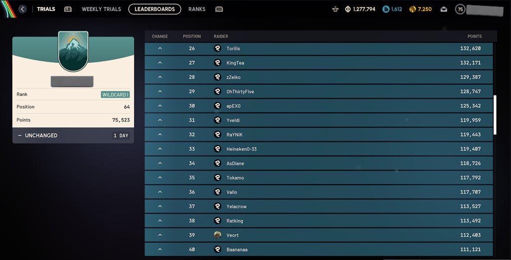 Depending on when you unlock your Trials, you will be placed in a leaderboard with 99 other players. In this leaderboard, players are ranked by their Personal Best Rank points in each Trial, combined.