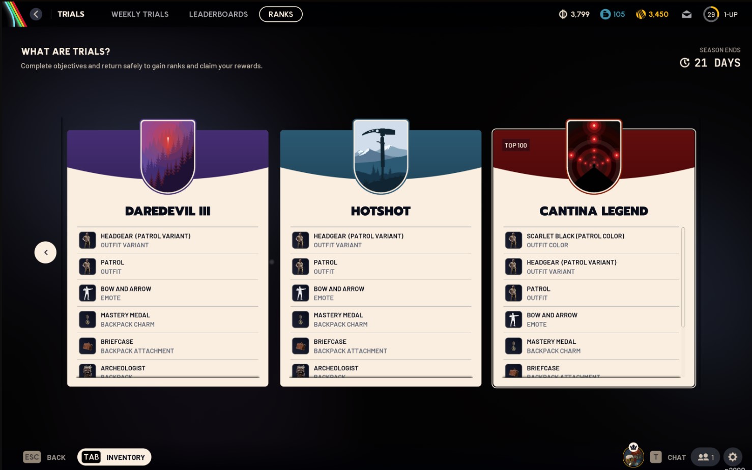In Trials, you start each week from Rookie I rank and then climb the ranks by completing the weekly challenges. In each rank, you're placed in a leaderboard of 100 people. Here are all the ARC Raiders Trials ranks: