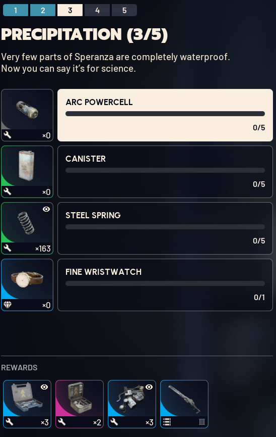 | 5 ARC Powercells | The ARC Power Cell is a Common loot item that you can from defeating all ARCs. You can also loot it from ARC husks. |