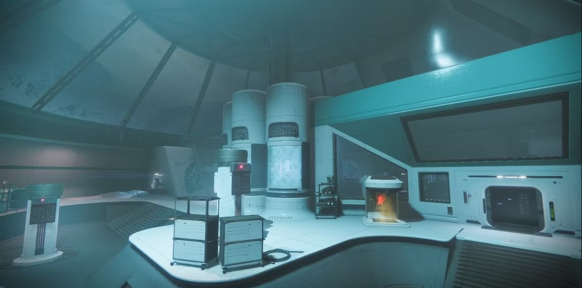 The room is divided into an upper and a lower level. The upper level contains the Scanner and the security fuses, while the lower level contains the Operator panels and enemy spawns. Players will need to communicate across both sections to disable the correct fuses.