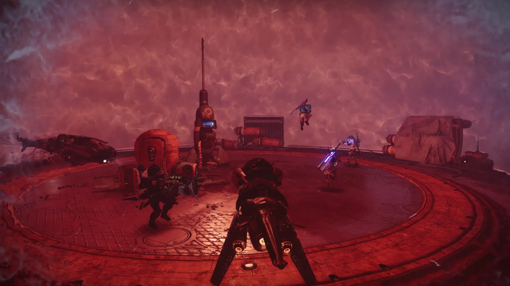 The battle takes place in a circular arena with multiple terminals. The fireteam will need to move between designated deposit stations while avoiding Taniks’ attacks and carrying the nuclear cores.