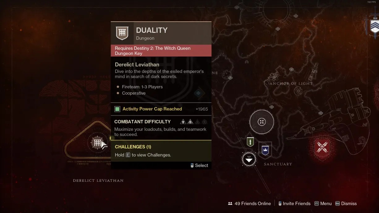 To access the Duality dungeon, you need to have the Witch Queen Dungeon Key purchased on your account.