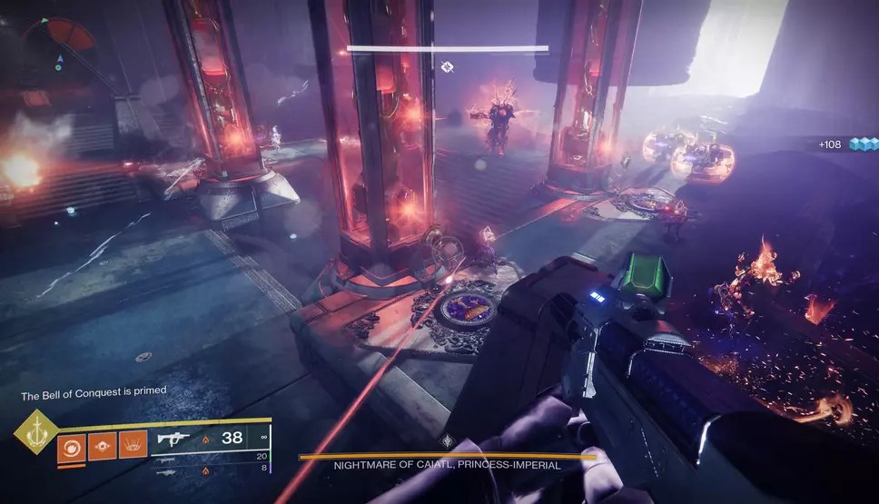 Use the central bells strategically to open gates and clear obstacles as you progress deeper into the Leviathan’s mindscape. After navigating the final jump section and clearing the last wave of enemies, you’ll arrive at the final arena where Nightmare of Caiatl, Princess-Imperial awaits.