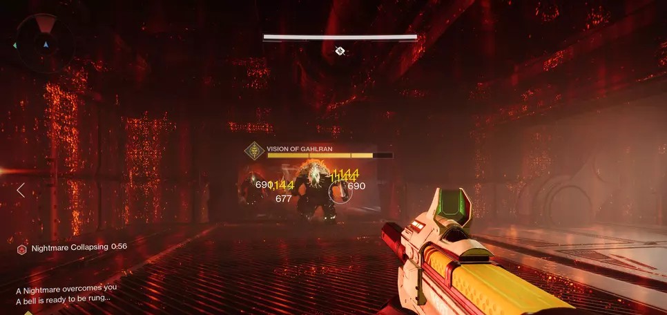 To reach the first encounter in the Duality dungeon, fight through the Leviathan’s corridors and use the Bell of Conquest to shift into the Nightmare realm. Navigate a short jumping puzzle and switch between realms to clear enemies and unlock doors. After progressing through this section, you’ll drop into the arena where Nightmare of Gahlran, Sorrow Bearer awaits.
