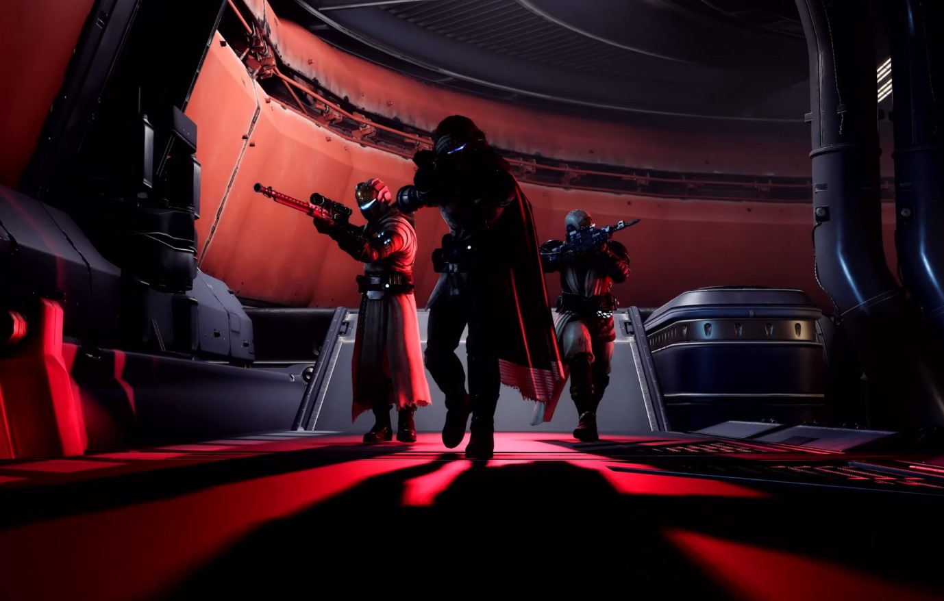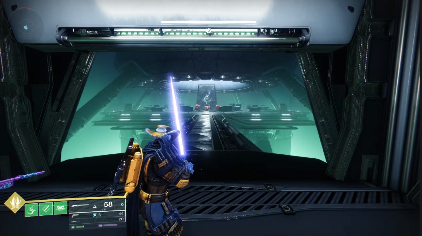 You'll want to continue through the path and access the vent space to continue until you reach the large shipping hangar. Inside, you'll need to destroy the Cabal and the Behemoth, and interact with the console to activate moving platforms, where you'll find the way forward in the center hatch by looking up.