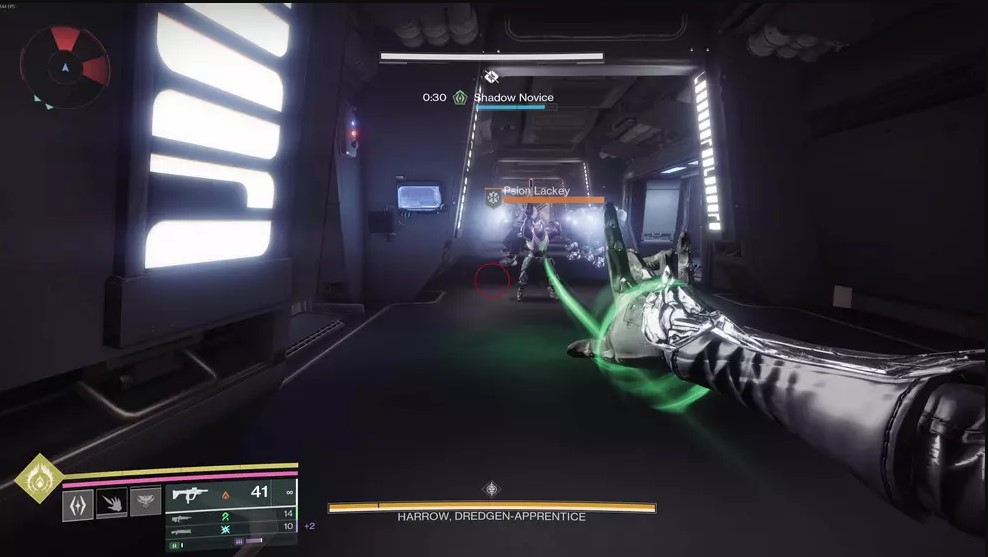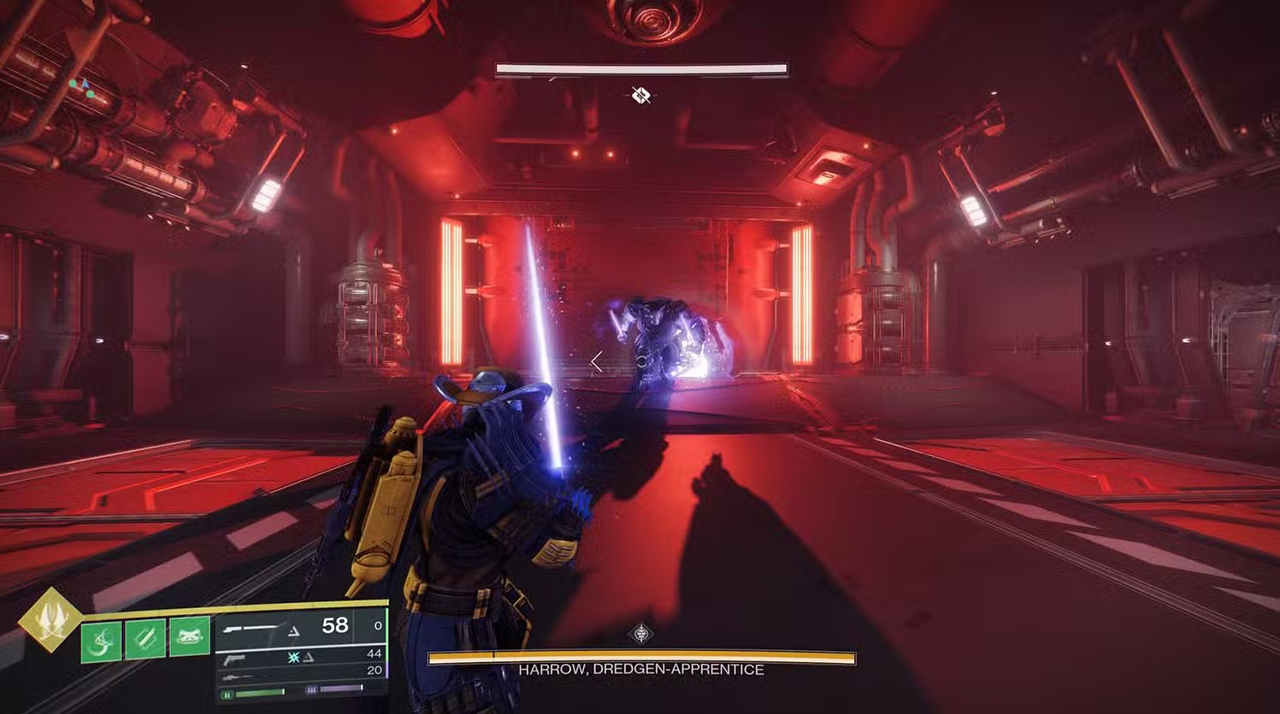 The first boss encounter in Equilibrium pits you against a dual Praxic Blade-wielding Gladiator named Harrow, Dredgen Apprentice. This fight is an expansion on what you learned in the first encounter. As before, you’ll be using the Gathering Shadows mechanic to build up what is now the Shadow Apprentice buff.