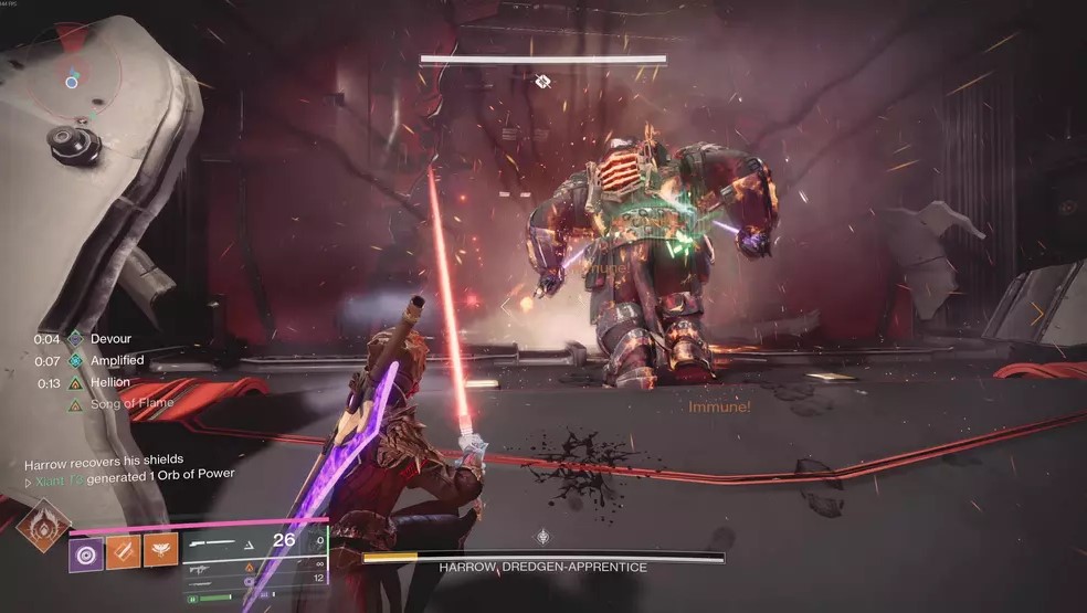 When Harrow reaches the split in his health bar, his shields will reset, and he’ll cut a hole in the back wall of the arena and attempt to run. At the other end of the hallway, however, those shields will falter, giving you enough time to finish the fight. Any weapon with high burst damage potential is fantastic here, including the Praxic Blade, Legend of Acrius, or Parasite, to name a few.