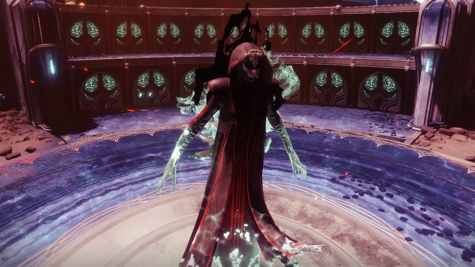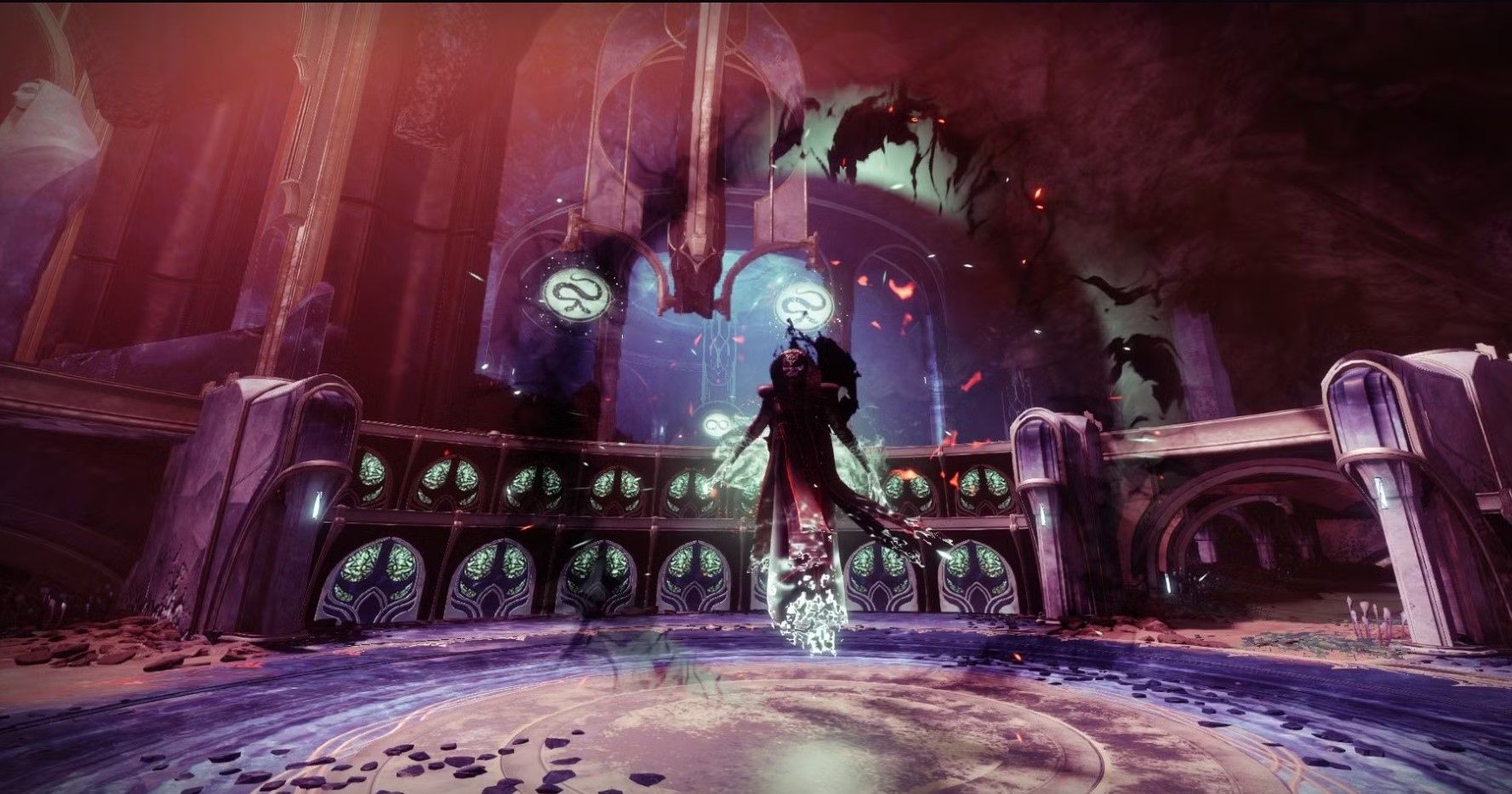 Riven resides in a massive chamber, but players will not fight her head-on at first. Instead, you’re split into two mirrored rooms, each featuring a winding hallway, elevators, and crystal platforms.