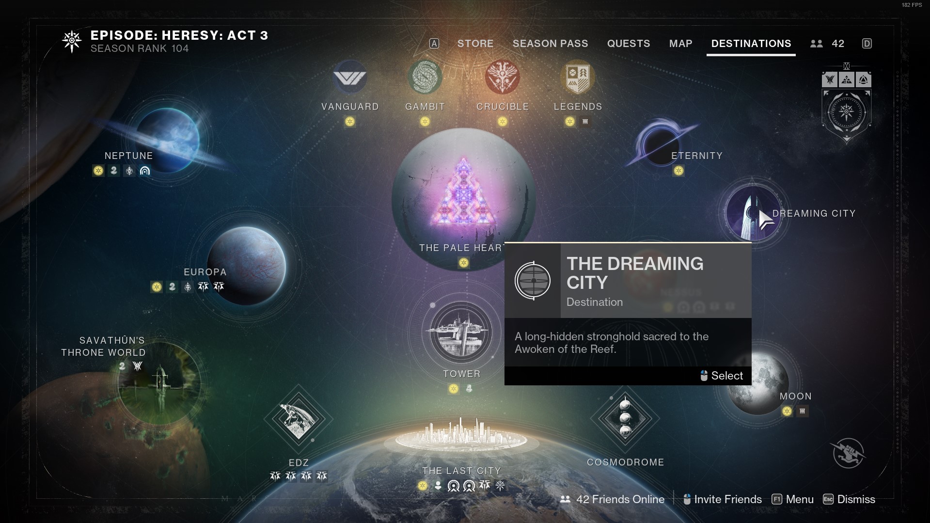 You must open the destination menu and find the activity icon in the Dreaming City destination.