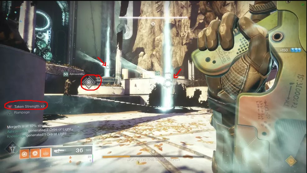 This encounter revolves around managing buffs and debuffs while collecting Taken Strength charges that drop from enemies. Your fireteam must coordinate pickups and cleanse debuffed players while avoiding a wipe. Once enough charges are collected, you enter a damage phase to defeat Morgeth.