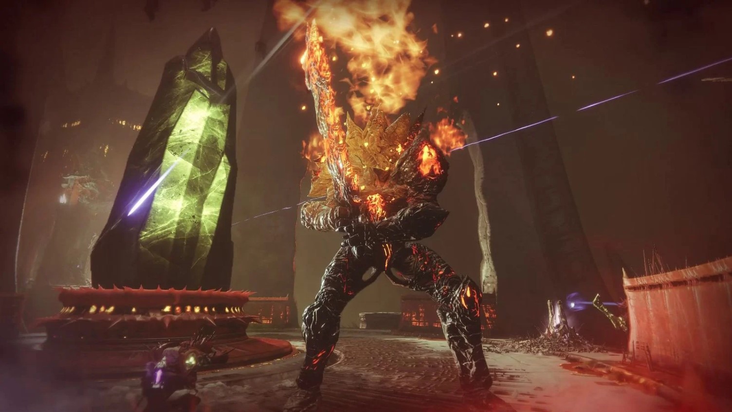 In the first encounter of Pit of Heresy, your fireteam must defeat 3 unique minibosses using matching Hive runes and the Sword relic mechanic. The encounter focuses on rotating sword types, executing the correct combo to break each boss’s shield, and dunking orbs to progress.
