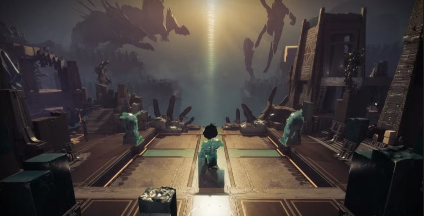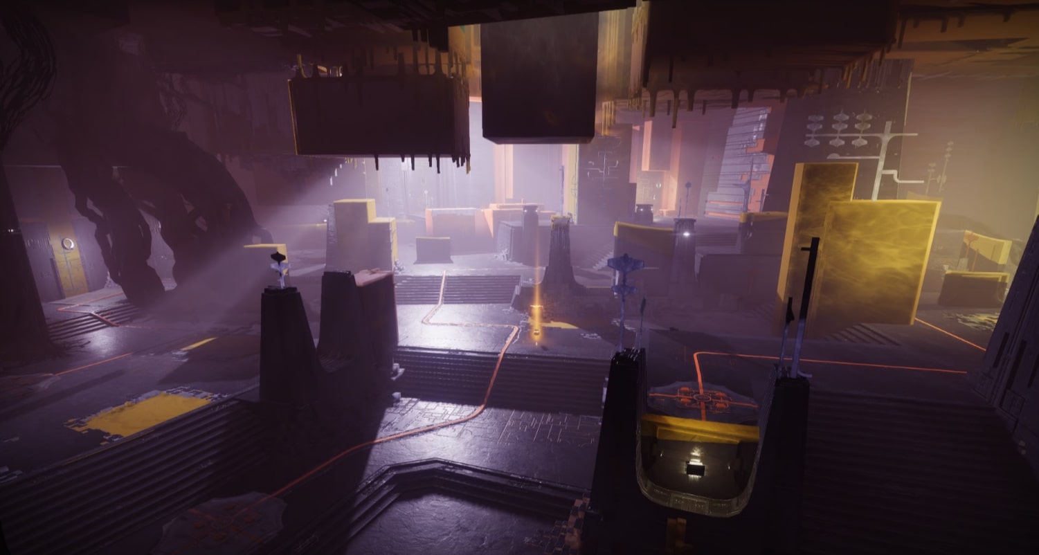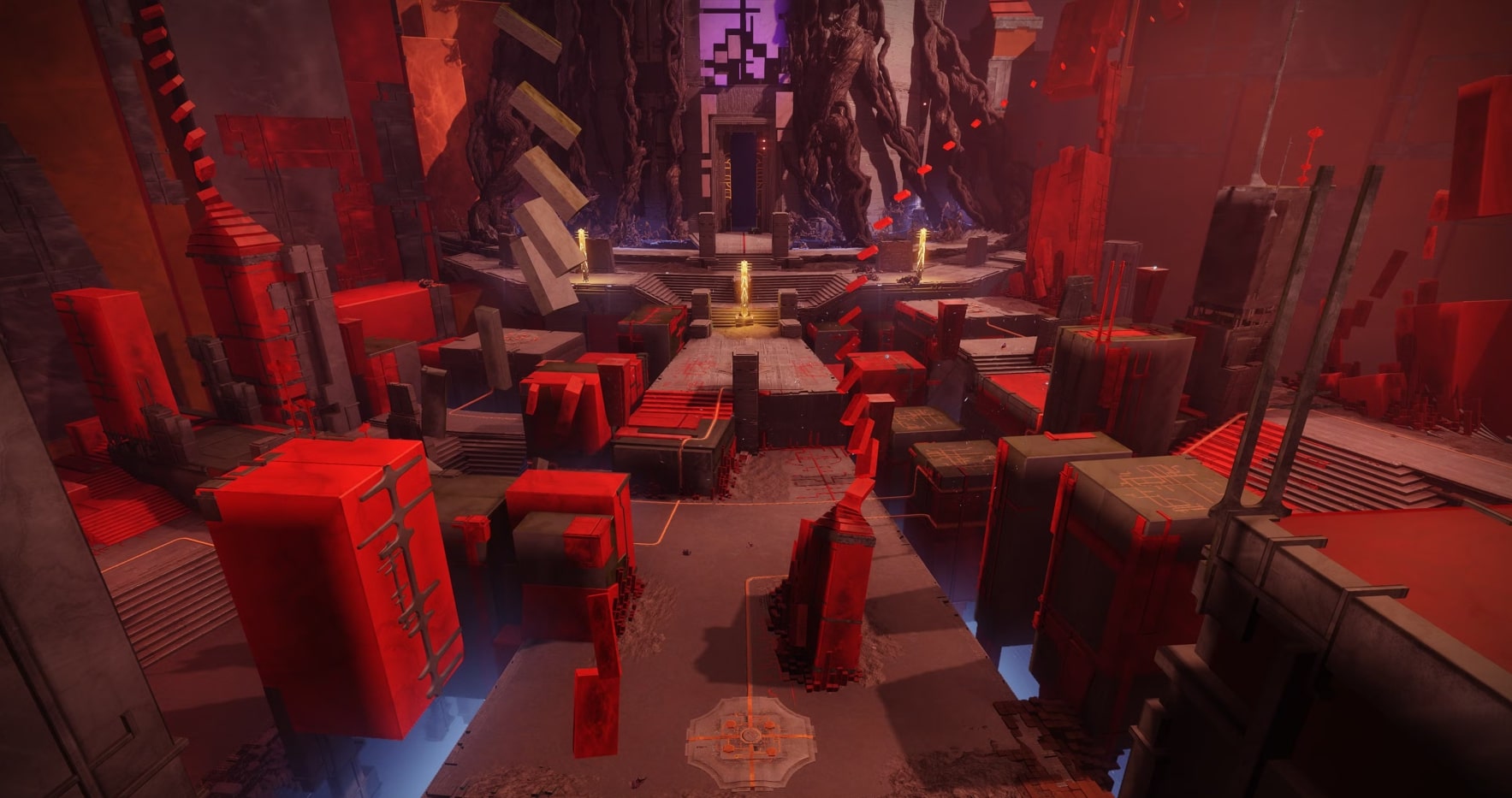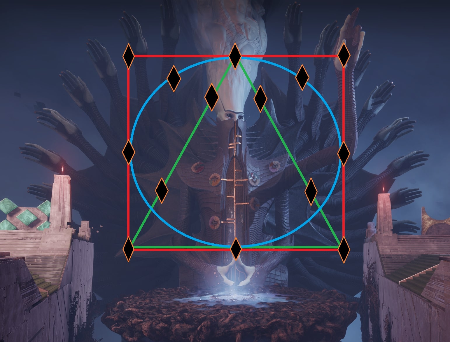 The arena for the third encounter is a long corridor separated in 3 rooms, each room has 3 totems, 3 plates for senders and 3 plates for closers, additionally there are so gaps where you have to be careful not to fall to your death.