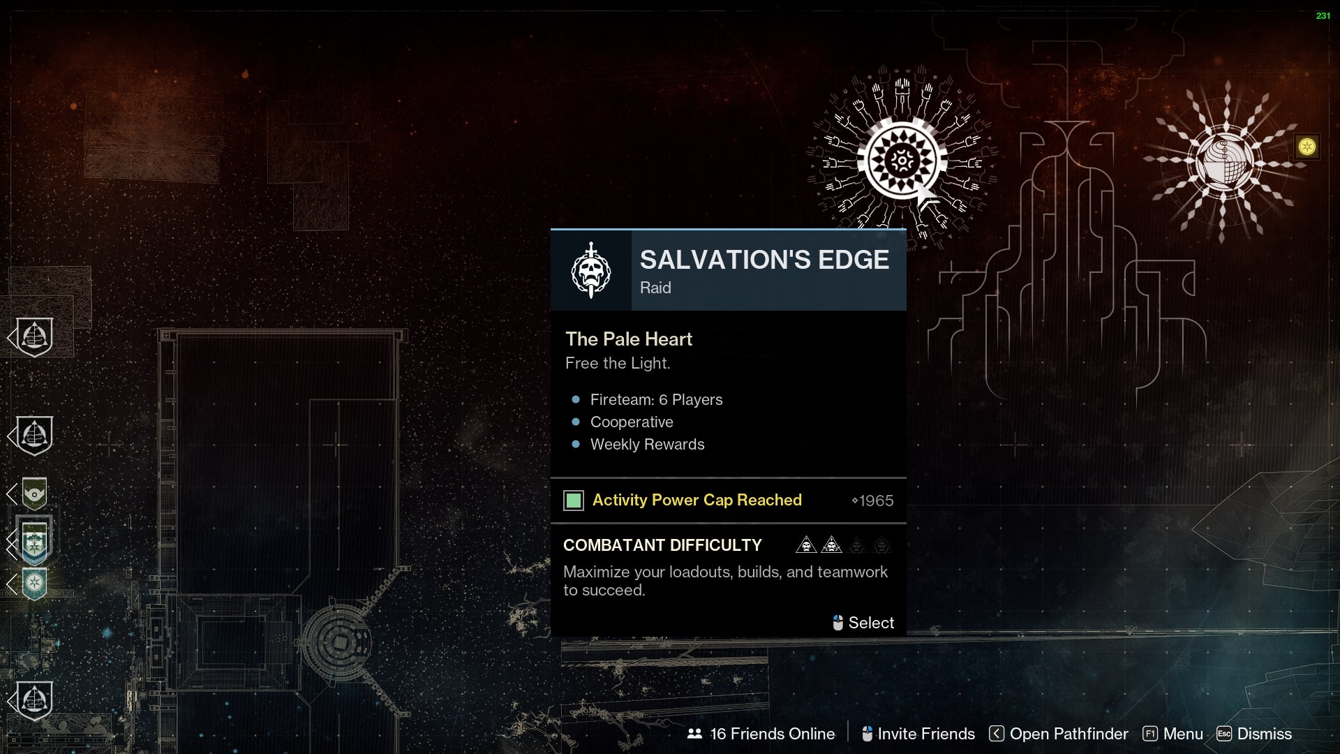 - Salvation's Edge - Complete any version of the Salvation's Edge raid.