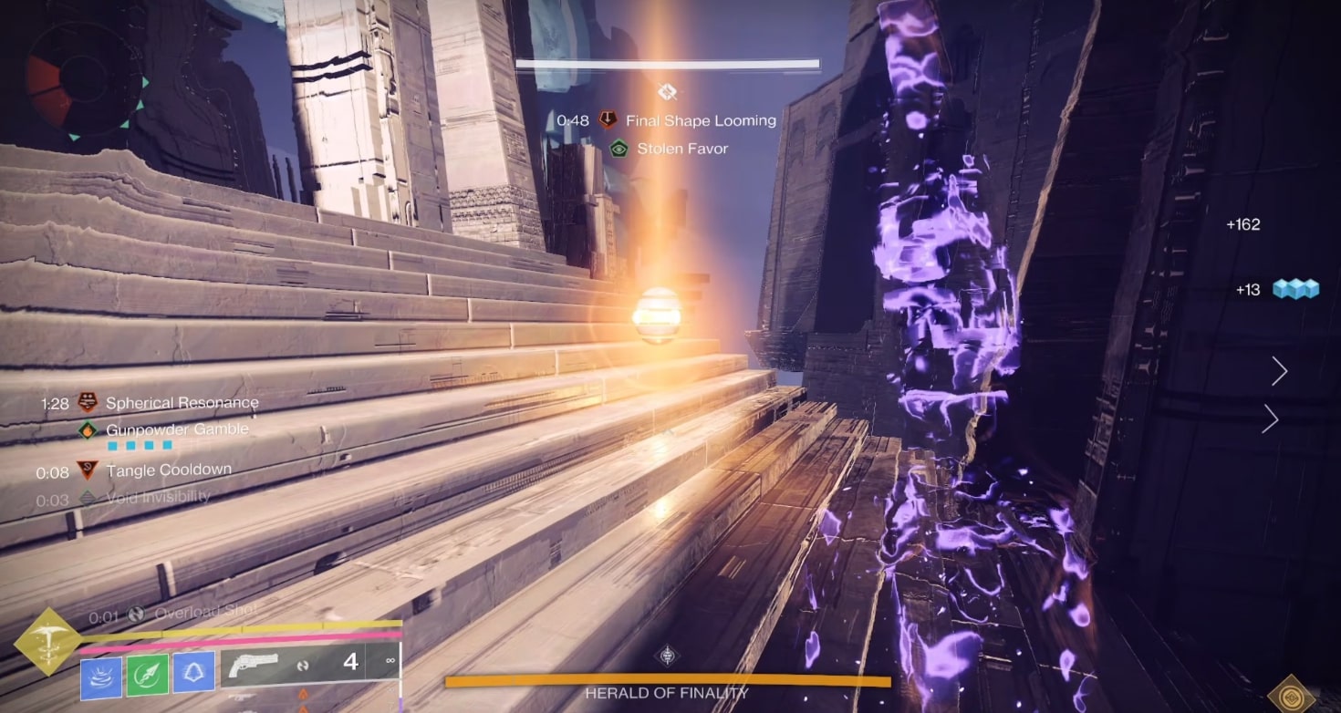 - Pulse & Resonances: Bounce the buff 3 times, spawning 1 pyramidical and 1 spherical resonance per bounce (do not collect yet).