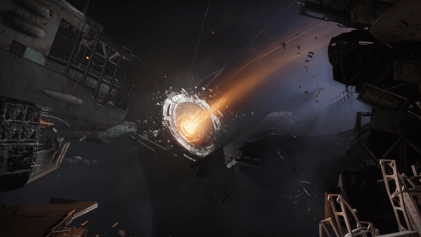 Continue through the debris while avoiding the lightning strikes until you see the final boss on a platform. Drop down the hatch to reach the final encounter.