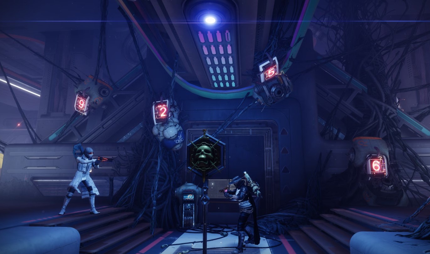 Once you enter the boss room, you will notice 9 panels all over the walls, numbered 1 through 9. You will need to shoot 4 numbers in a specific order to activate the DPS phase.